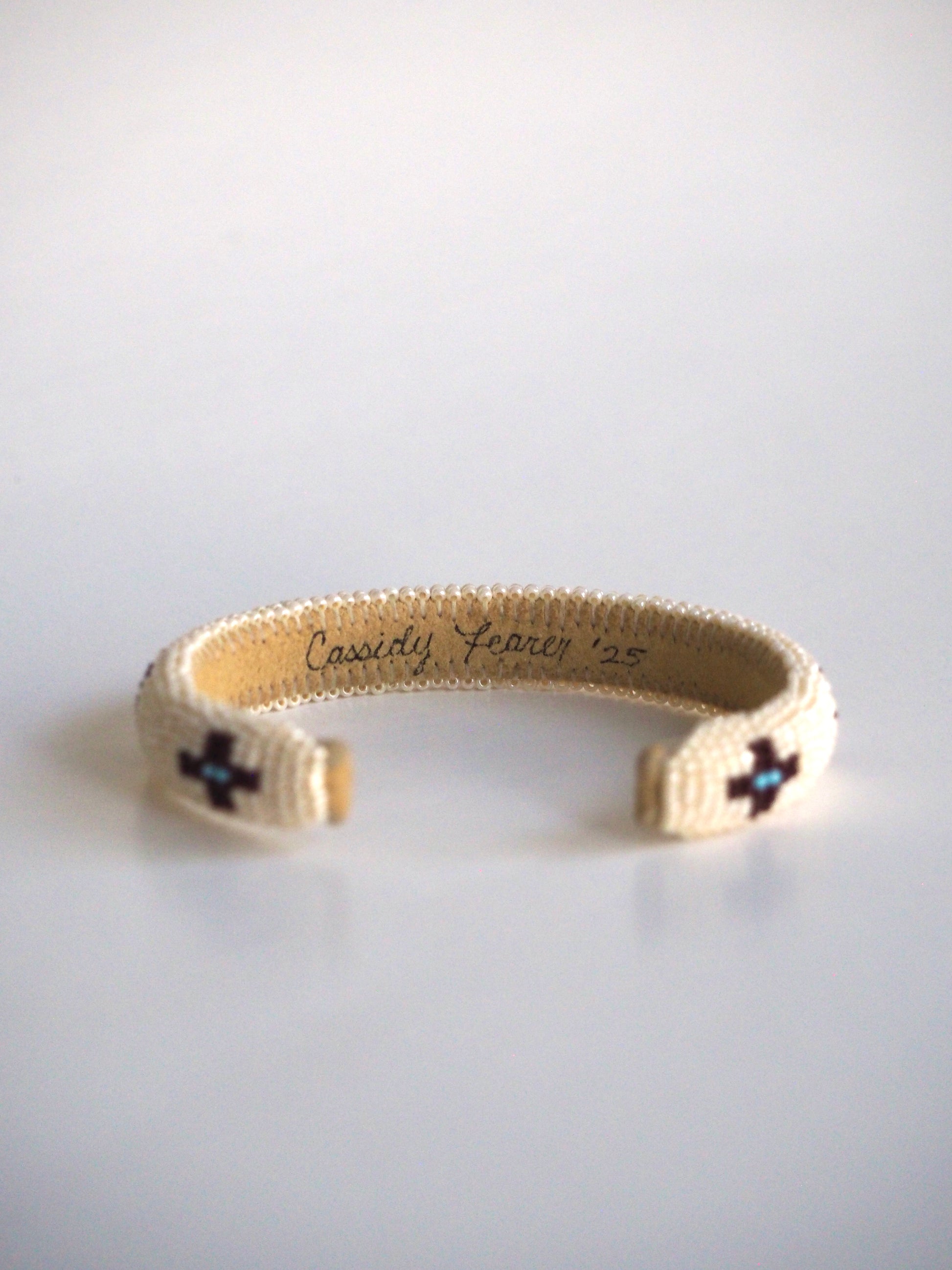 This bracelet was specially designed and handmade by Cherokee Artist Cassidy Fearer.