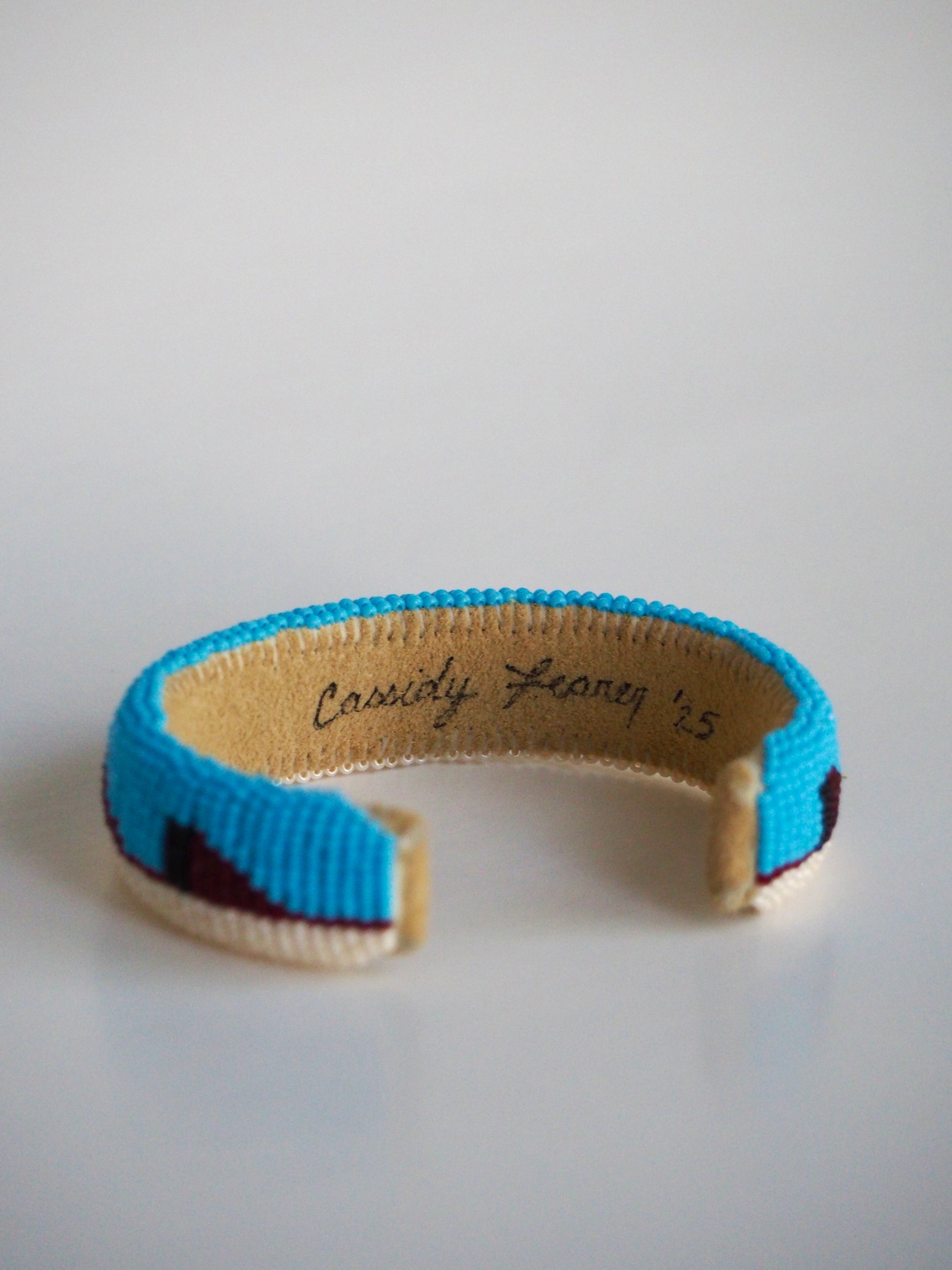 This bracelet was specially designed and handmade by Cherokee Artist Cassidy Fearer.
