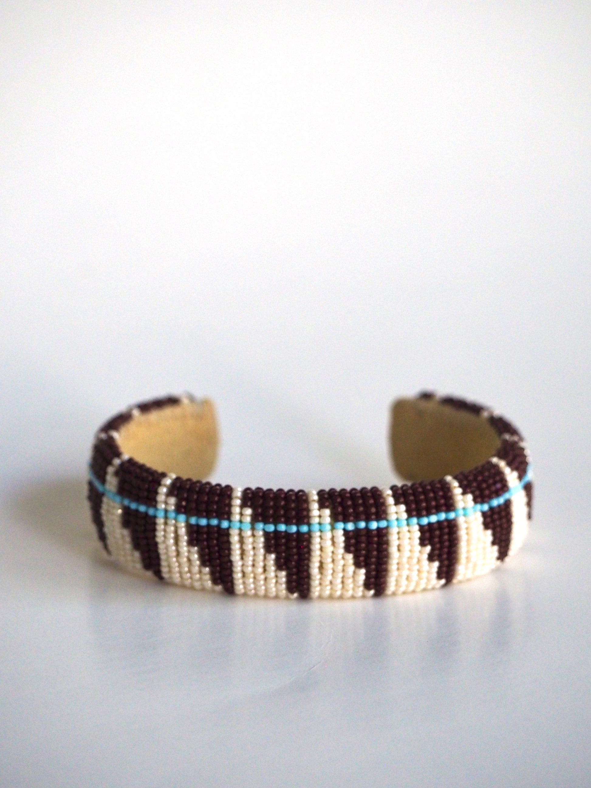 Beaded Cuff Bracelet - Straight Path - Dark Brown
