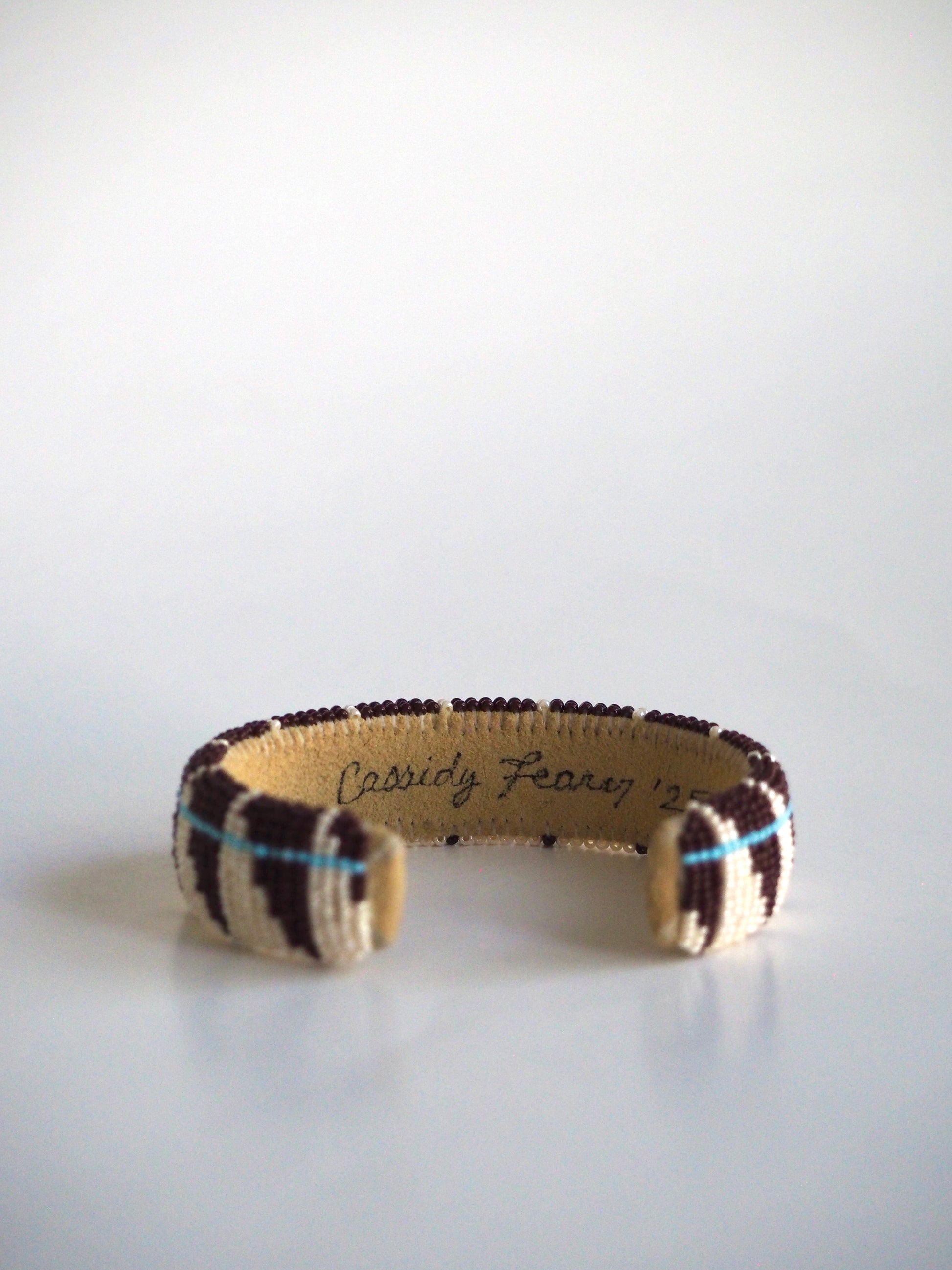 This bracelet was specially designed and handmade by Cherokee Artist Cassidy Fearer.