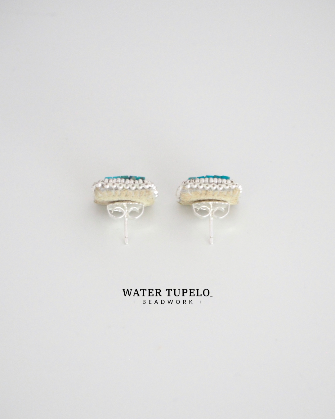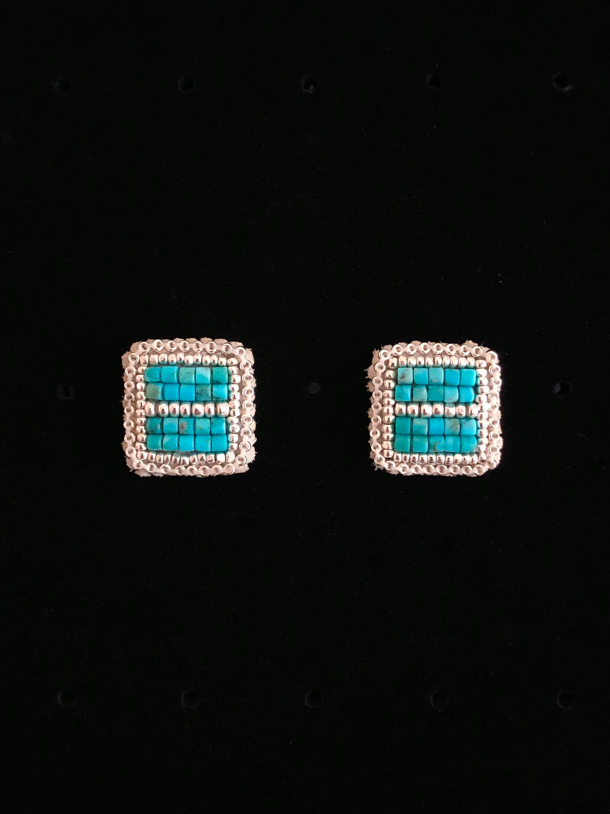 Kingman Turquoise Beaded Posts with Sterling Silver edging. Beaded with Authentic Kingman Turquoise from the Kingman Mine of Arizona.